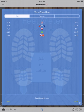 With Feet Meter you can measure feet length and width quickly and check your shoe size using your camera and a standard sheet of paper. Now you can find out your fitting shoe size before making an online order.