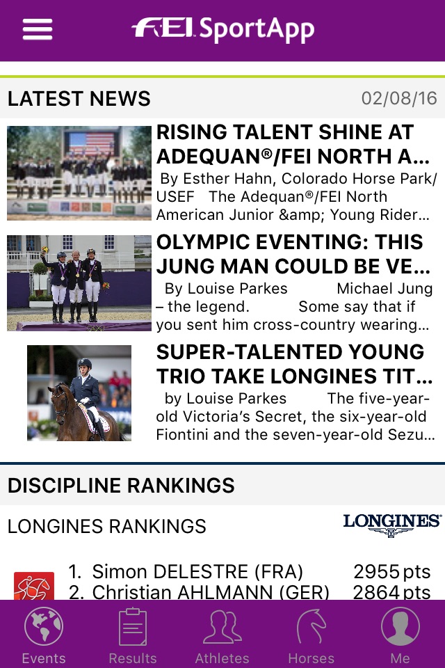 - Stay tuned with the latest FEI news releases as well as the current Top 3 athletes from the rankings lists, directly published to your FEI SportApp homepage.