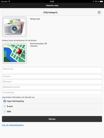 I appen har du möjlighet att anmäla om du hittar ett fel i vår gemensamma utomhusmiljö. När du skapar ett ärende skickas det in i Västerås stads ärendesystem för snabbast möjliga hantering. När du skickar med ett foto på felet blir det lättare för oss att snabbt förstå vilka åtgärder som behövs.