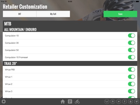 Enter the Felt product world to enjoy and compare our newest available bikes. A filter option allows you to customize your app for just featuring the products you want to check out or you want to present to others.