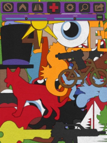 Feltz allows you to create pictures from a large collection of felt pieces (over 820 in the full version). So if you want to make a farm, a monster flying a plane, Dinosaurs and frogs on skateboards or a simple flower, your imagination is the limit.