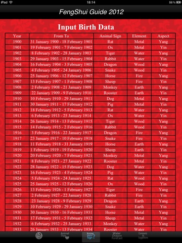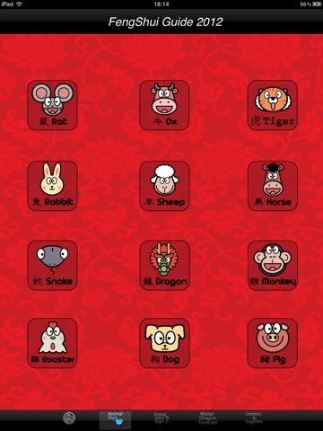 Fengshui Guide 2012 Application contains information like Lucky Color , Element , Wealth ,Career ,Health , Romance & Education for All Animal Signs .