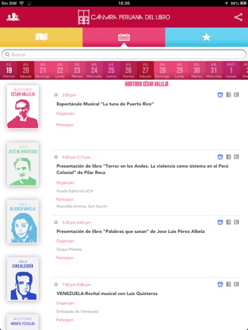 Descarga en tu Tablet o Smartphone toda la información sobre los más de 600 eventos y presentaciones que tendrá la Feria este año. Dónde se realizarán, quiénes participarán, los principales expositores, conciertos, recitales, mesas redondas, entre otras muchas actividades culturales. Cuenta también con un mapa interactivo que te permitirá ubicar de inmediato el salón o stand que busques entre los más de 300 stands funcionando.