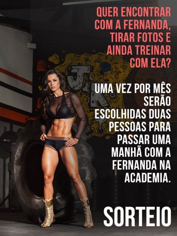 - Quer encontrar com a Fernanda, tirar uma foto e ainda fazer um treino? Uma vez por mês será escolhido duas pessoas para passar uma manhã com a Fernanda na academia;
