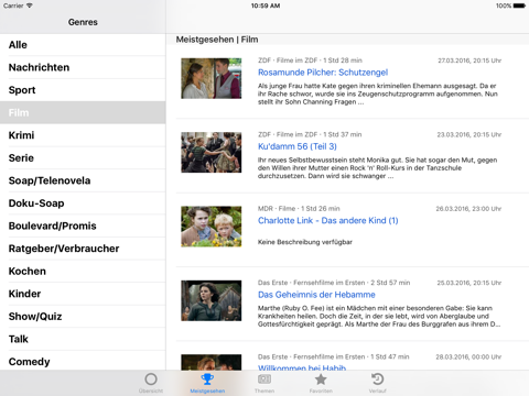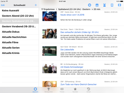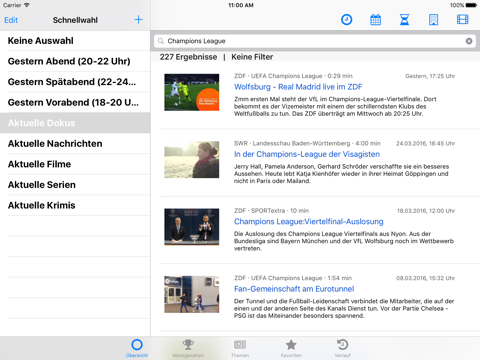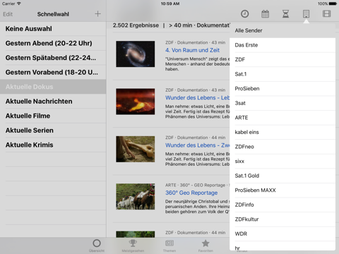 Super! Sehr übersichtlich und sehr flexibel einzurichten. Funktioniert absolut problemlos, schnell und zuverlässig. Bietet hauptsächlich Zugriff auf die Mediatheken der öffentlich-rechtlichen Sender. Gibt aktuell m.W. nichts vergleichbares und besseres!