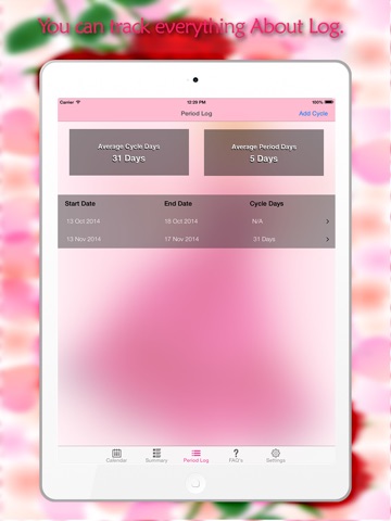 Track Cycle Days, Spotting,Weight,Temperature in Health kit app.