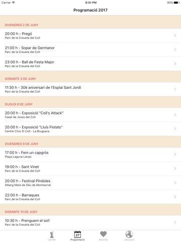 Amb laplicació de la Festa Major del Coll podràs tenir sempre a mà el programa dactivitats i estar al dia de totes les novetats. Rep notificacions dels teus esdeveniments favorits i no ten perdis cap! A més, arribar-hi et serà dallò més fàcil gràcies al mapa dubicació de tots els espais de festa.