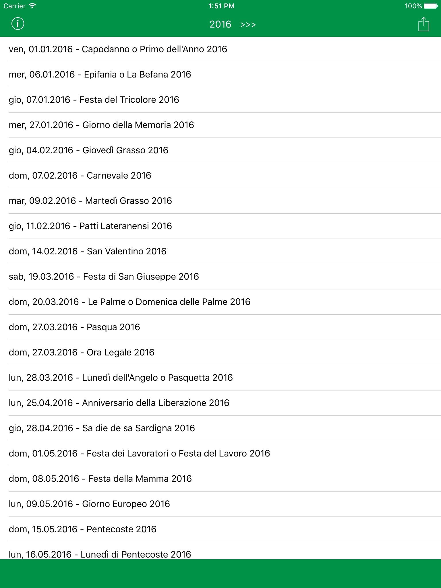Festività Calendario Italia 2016 - Festa nazionale e giorno festivo prescritto dalla legge lunario at Mac App Store analyse