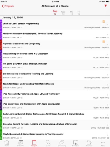 • Program: Browse the entire event program to build your personal schedule, bookmark sessions or speakers, or access session handouts as available.