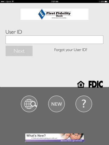 To use the First Fidelity Bank Mobile Banking App, you must be a First Fidelity Bank Internet Banking user. The First Fidelity Bank Mobile Banking App allows you to access your accounts using your existing First Fidelity Bank Internet Banking username and password. To register for Internet banking, please visit www.bankffb.com.