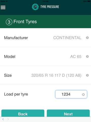 Our app provides tyre pressures for major tyre manufacturers and models. It is designed to be easy to use, with large clickable icons, taking you through various steps to give you the best pressure based on your specific situation.