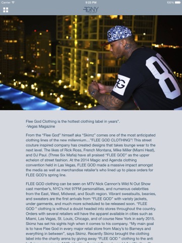 From the “Flee God” himself aka “Skimz” comes one of the most anticipated clothing lines of the new millennium…”FLEE GOD CLOTHING”! This street couture inspired company has created designs that takes lounge wear to the next level. The likes of Rick Ross, French Montana, Mike Miller (Miami Heat), and DJ Paul. (Three Six Mafia) have all praised “FLEE GOD” as the upper echelon of street fashion. At the 2014 Magic and Agenda clothing convention held in Las Vegas, FLEE GOD made a massive impact amongst the media as well as merchandise retailer’s who lined up to place orders for FLEE GOD’s spring line.