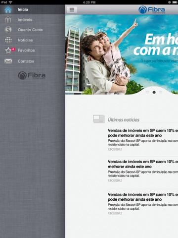 O nosso novo conceito de morar está disponível agora na tela do seu iPhone/iPad. Com 20 anos atuando no mercado da construção civil, a Fibra traz em seus projetos a marca da qualidade e o nosso método de incorporação que é referência no setor.