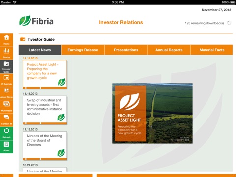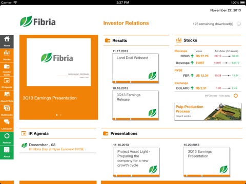 This app was developed with the goal to strengthen the relation of reliability, partnership and transparency among Fibria and investors.