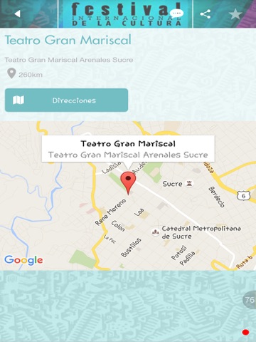 La aplicación del Festival Internacional de la Cultura Sucre 2015, te permitirá conocer a detalle todas las novedades del festival para que estés al tanto del programa oficial, los artistas, presentaciones, grupos, horarios, lugares y así podrás disfrutar al máximo de 2 semanas intensas de Cultura, del 14 al 28 de noviembre de 2015.