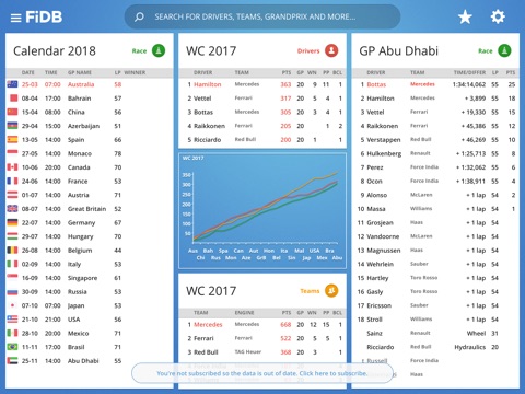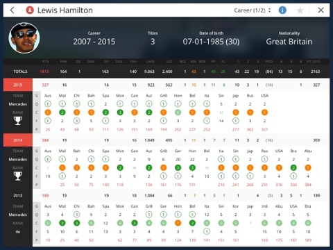 FiDB is the only iOS app containing all Formula 1 race results. From the very first race in 1950 until now. FiDB also offers much more Formula 1 data and is updated after each race.