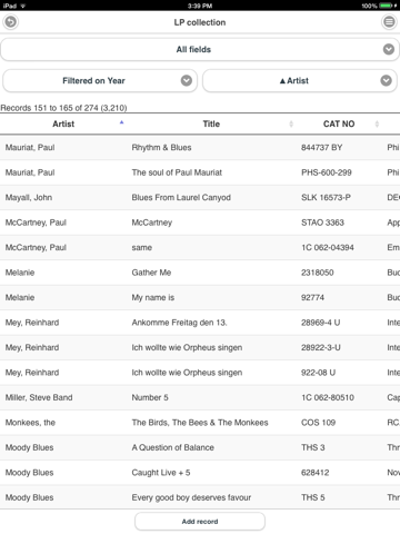Records shown in table and form views can be exported as CSV files for integration with other desktop database or spreadsheet applications. Only data from the fields included in active view are exported. Data in media fields are included in separate files accompanying the text data in CSV file. The application includes meta information in a CSV file which enables full cycle export/synchronized re-import. This allows modifying database records using external tools such as desktop database or spreadsheet programs.