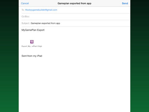 - Share saved GamePlan Files via email with other app users or save to and allow others to Import your database of GamePlans.