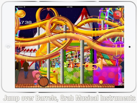 Run and jump as fast and high as you can to collect the coins and musical instruments while dodging various objects thrown in the way by a wayward Clown.