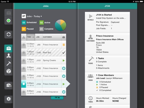 * Start, pause, or complete jobs on the fly, with automatic time tracking
