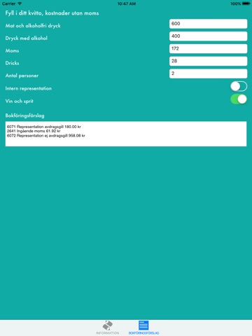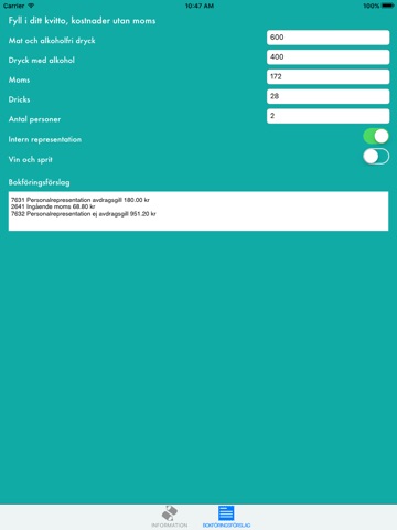 Fiffiga fia representation är en liten men fiffig app som räknar ut hur mycket moms du får dra av i samband med måltider och represetation. Måltider är enligt skatteverket lunch, middag eller supé i samband med representation.