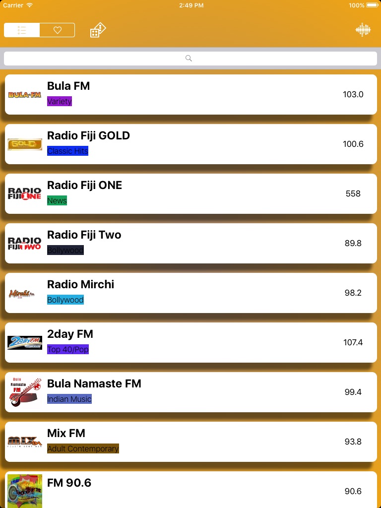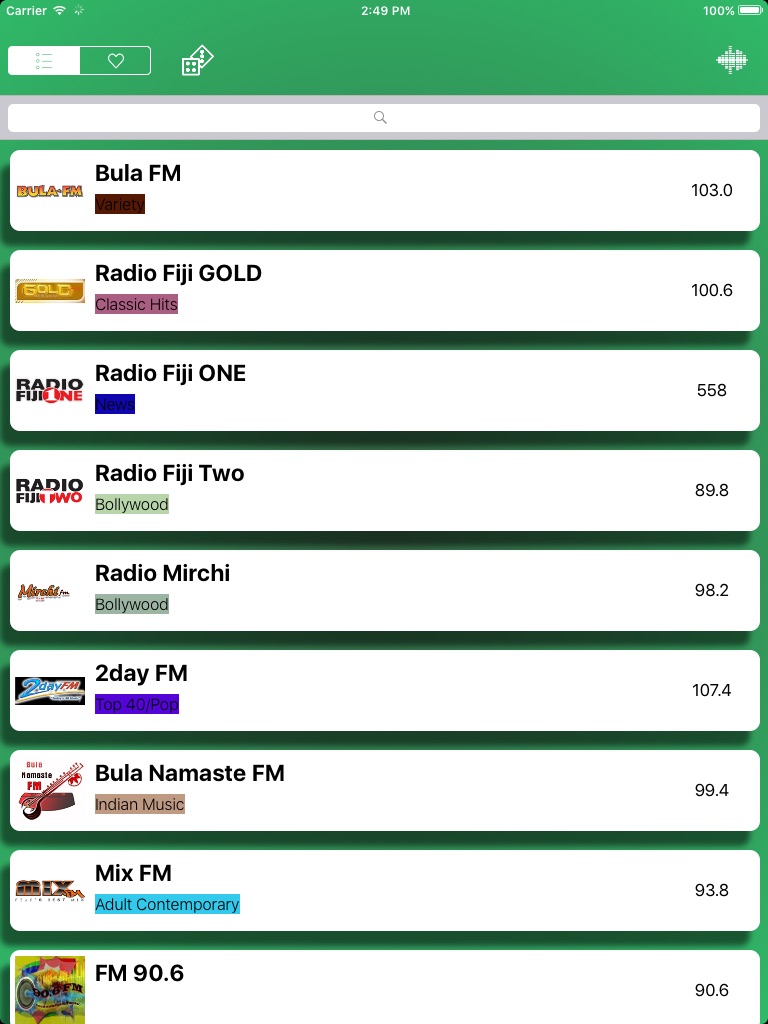 A streaming radio app that streams most common radio stations in the Fiji Islands. Additional Indo-Fijian cultural folk music stations. Designed for iOS 7