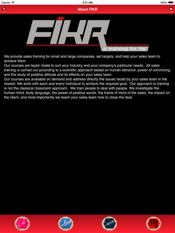 Our courses are taylor made to suit your industry and your companys particular needs. All sales training is carried out according to a scientific approach based on human behavior, power of convincing, and the study of positive attitude and its effects on your sales team.