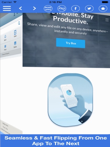 This is a transformational file sharing experience which has a number of advanced features such as having multiple social networks open simultaneously in a 3D Box.