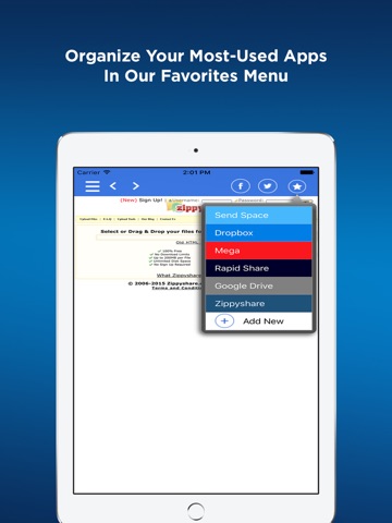 Just download this ONE App and have all your online file sharing services in one place: Dropbox, Mediafire, Box, Mega