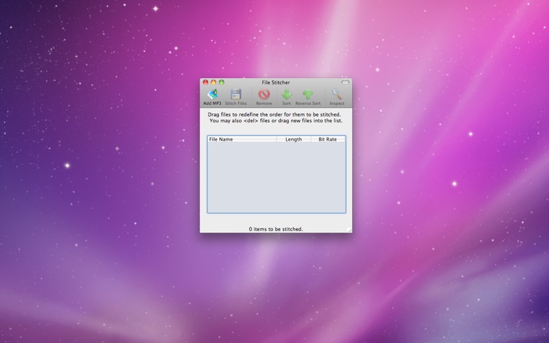 File Stitcher is the easiest MP3 merging utility there is. Simply drag and drop the files you wish to merge on the application icon and click the "Stitch Files" button.