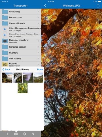 Wherever you go, use this free app to browse, upload, download, and share all your files and photos wherever they reside. The Transporter app lets you access and share any file you sync to Transporter from your computers and mobile devices.