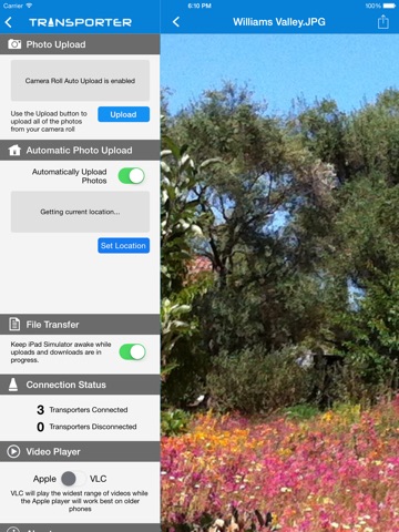 Location Services are only used to set or update the geo-fence area for optional Automatic Camera Uploads. iOS detects the geo-fence, wakes the app for uploads, and may display the Location Services indicator. Transporter never uses GPS continuously, so its use of Location Services has no significant impact on battery drain.