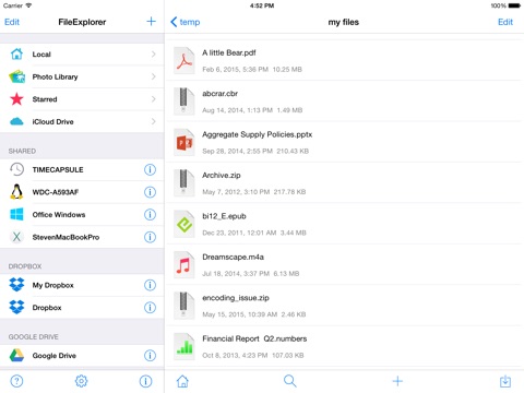 Owlfiles is a powerful file management app. It can access not only local files, but also access files on your computer, NAS and cloud. Stream movies and music to your iPhone/iPad. Directly view and manage documents, photos on your computers, NAS and cloud without downloading.