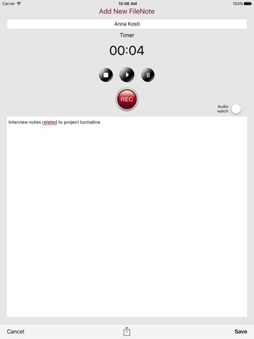 You can record directly into your device and FileNotes will integrate whatever you dictate in an organized and simple manner.