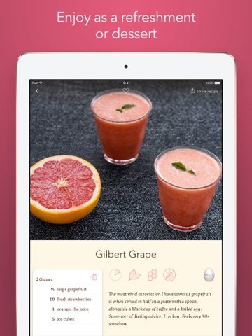 La meilleur app pour smoothie. Simple, jolie, bien pensée lapp est excellente. Juste une demande : ajoutez la possibilité de mettre des recettes en favori!