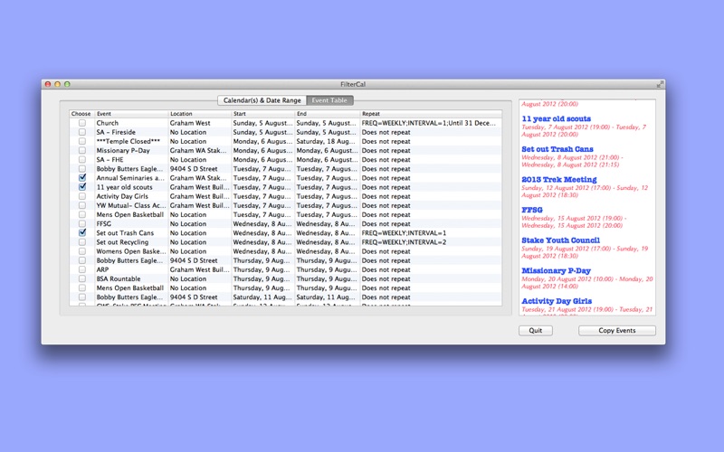 Filtering multiple or overloaded calendars is now simple. You can sort through all of your Family activities, work appointments and school commitments, and create a nice, neat, abbreviated schedule that doesnt induce hyperventilation by just looking at it.