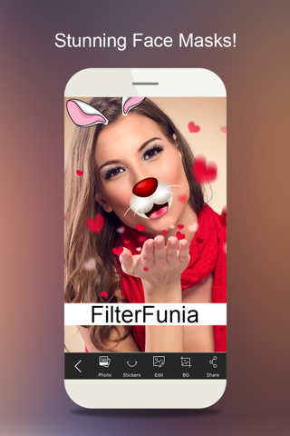 FilterFunia is a fantastic photo editor where you can create funny face on your photo with 50+ amazing filters along with Flower-Frames. You can also add beautiful backgrounds to your photo and write fonts in unique font-style and colors.
