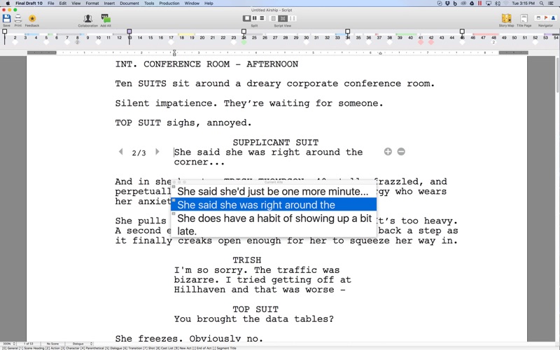 * Pagination - Final Draft paginates your script perfectly to industry standards universally for OSX, PC or iPad.