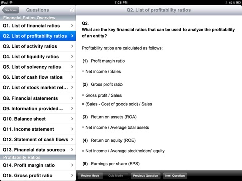 This app provides a quick reference on how to calculate financial ratios for analyzing the profitability, activity, liquidity and solvency of business entities.