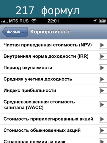 Это приложение содержит 217 базовых формул из всех ключевых разделов финансов.
