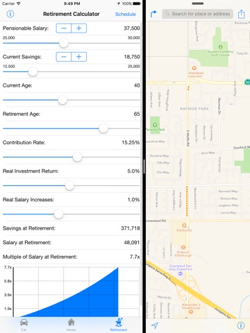 The retirement calculator allows you to flex many different parameters relating to savings towards retirement, including your current age and the age at which you plan to retire, as well as your real salary increases and real investment return assumptions. You can see how these and other parameters like your current savings, will affect how much you will have at retirement as a multiple of your salary at retirement (under the assumptions entered and no uncertainty).