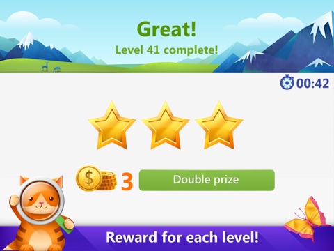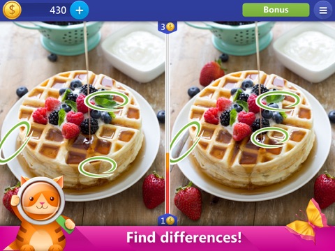 The main goal of the game is to find all the differences and tap them all. For the level that was passed quickly, you`ll get the reward. Be careful - taps beside the diffs will reduce time given in level.