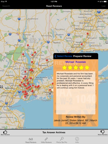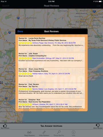 READ REVIEWS- Use our map or list format to read reviews of tax preparers in your local area or anywhere in the U.S.