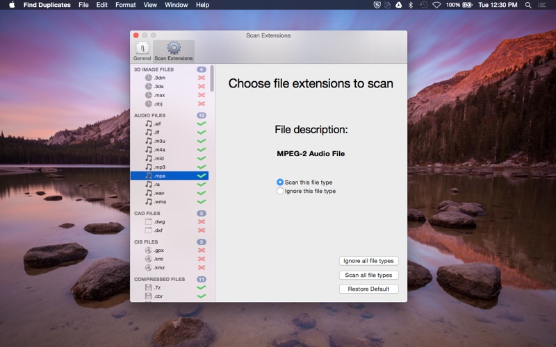 Many categories of files to scan for duplicates (for a complete list of the file extensions please the list bellow):