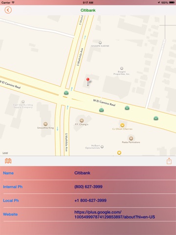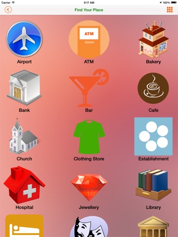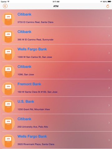 AroundMe shows you a complete list of all the businesses in the category you have tapped on along with the distance from where you are.