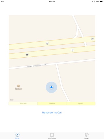 This app has you covered. You can run the app and as youre getting out of your car, simply tap the "Remember my Car" button. Later when you need to know where your car is, tap the "Find my Car" button and it will show you where you are and where the car is on your map and give you the distance and direction to the car.