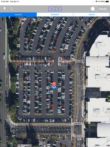 - Step through the last 100 saved locations (maybe you accidentally overwrote your current car location or want to remember a few locations). Simply press the + / - stepper buttons above the map.