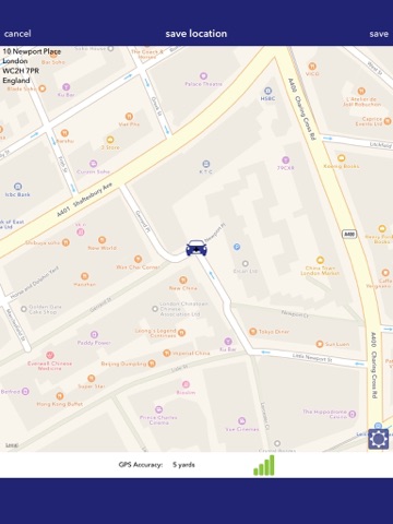 ● drop and/or drag your car location pin anywhere on the map before saving (useful if you forgot to save your exact car position when you parked)