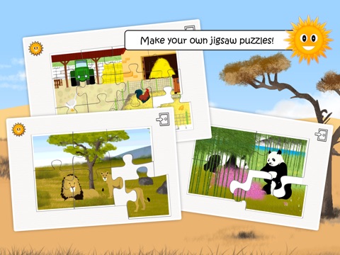 - "Make a jigsaw": the child is able to make jigsaws with the camera (4/6/12/20 pieces on iPhone, up to 42 pieces on iPad).