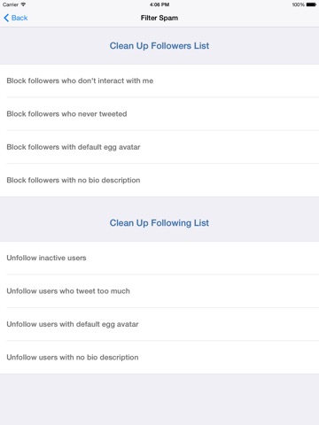 An excellent app for finding those that have unfollowed your Twitter. I would have given 5 stars if the App hadnt force me to write this review to continue to use all of its features even though I did have to originally pay for the app.